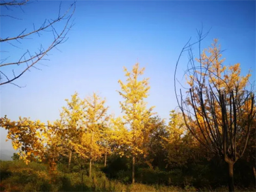 你知道吗?野河山景区里也有一片银杏树林哦,就在野河山人民公社周边,经过野河山庄向西走去,一片金黄的树林在阳光的照耀下,璀璨夺目。