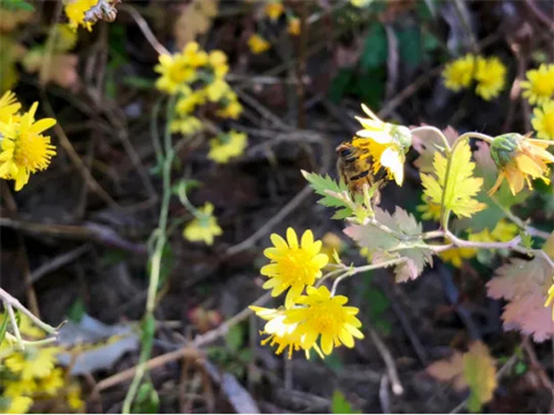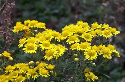 不是花中偏爱菊,此花开尽更无花。初冬时节,百花凋谢,唯有菊花傲然开放,这是菊花最旺盛的季节,青枝碧叶,绿的像夏日里的小树,黄澄澄的花,仿佛一束焰火。赞美菊花,迎着寒风傲然挺立。