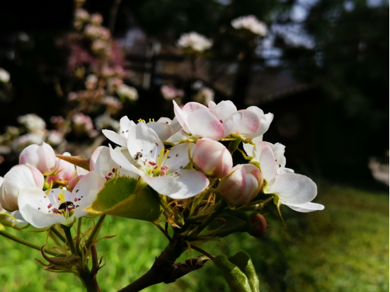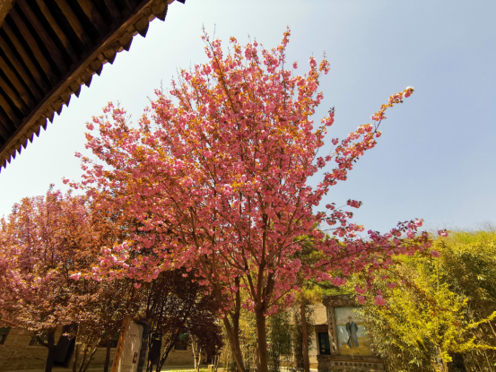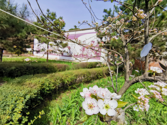在春天的末班车里,野河山庄周边的晚樱悄然盛开,明亮妩媚,樱舞飞扬。梨花如雪,在阳光的映照下,银光闪闪。牡丹花也在藏在一隅,炽热地绽放着自己的美丽。人间四月天,花开灿烂,明媚芬芳。