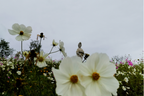 眼前五颜六色的花朵更显娇嫩