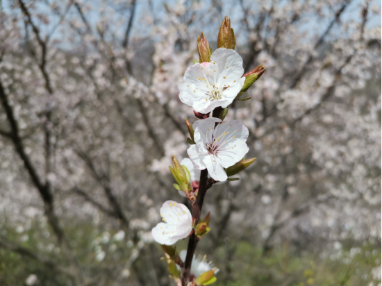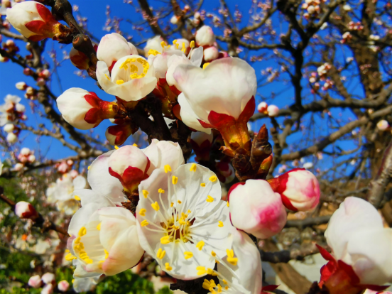 一朵朵粉嫩雪白的杏花已然盛开在枝头