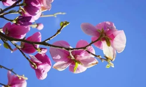 晴朗的天空与繁花相映